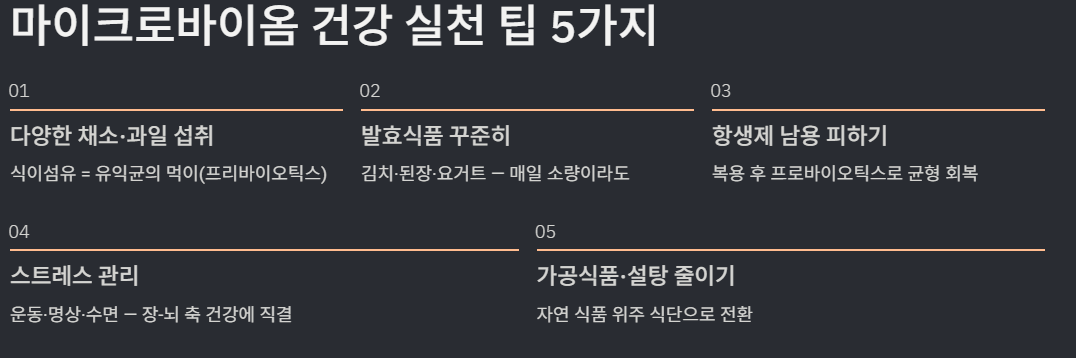 5. 마이크로바이옴 건강을 위한 실천 팁 5가지